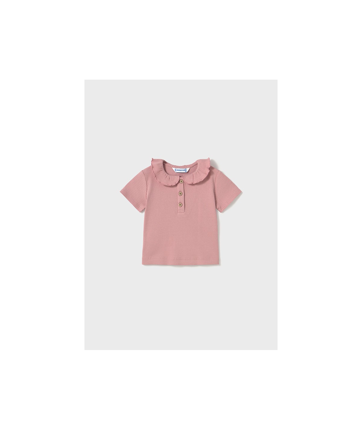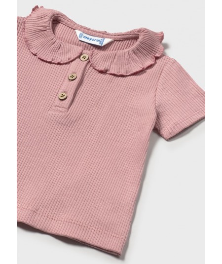 POLO CANALÉ MANGA CORTA CON VOLANTE ROSA BEBÉ NIÑA - MAYORAL