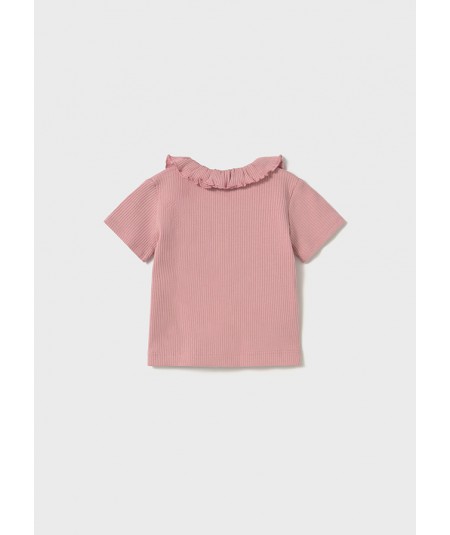 Camiseta manga corta con volante en cuello, confeccionada en algodón para bebé niña. De Mayoral.