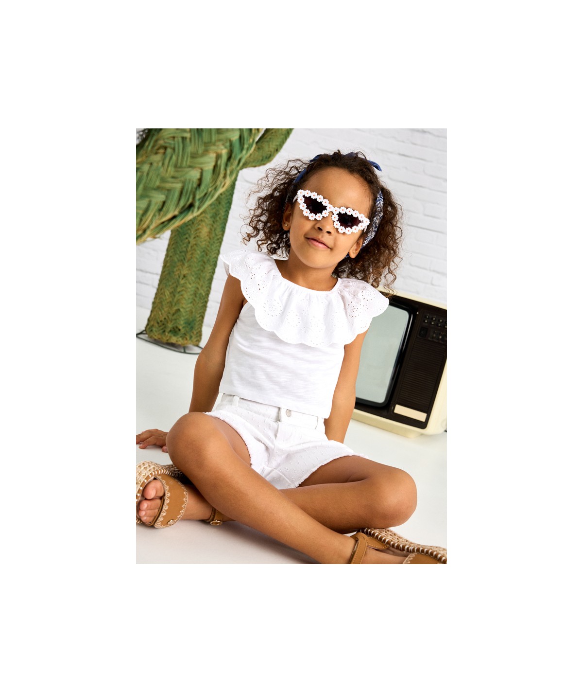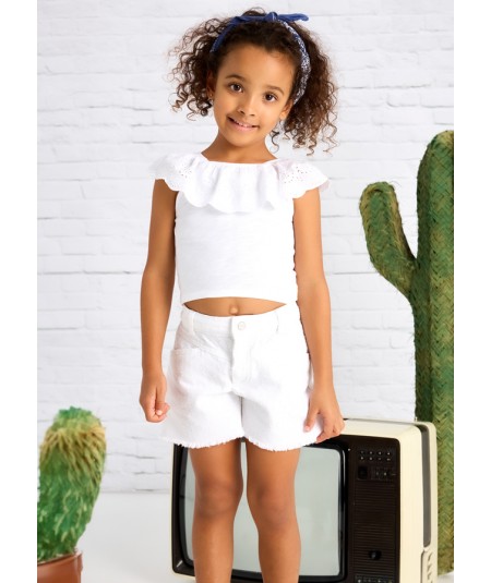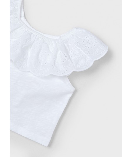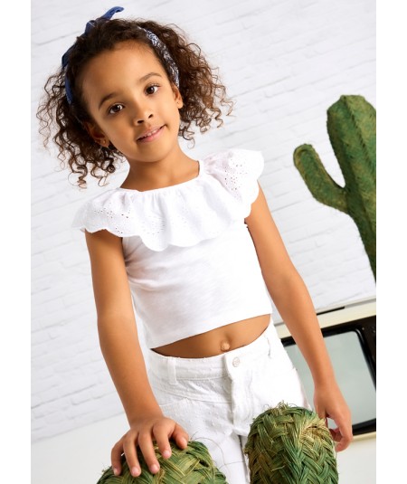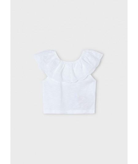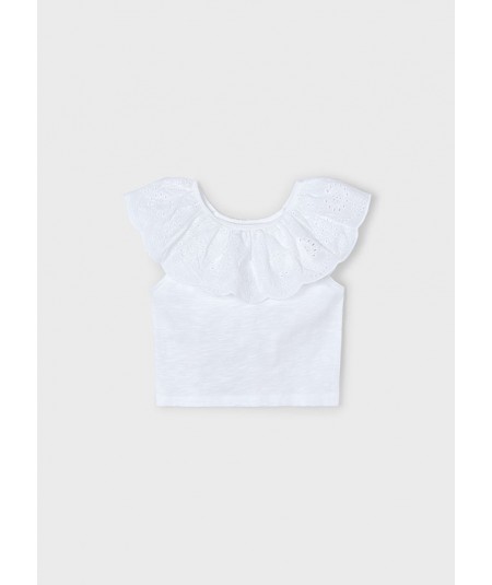 CAMISETA COMBINADA CON VOLANTE EN CUELLO BLANCA NIÑA - MAYORAL