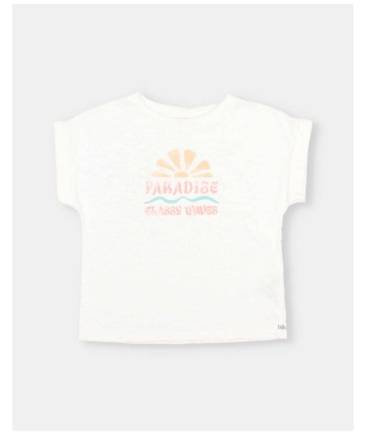 Camiseta con estampado paradise en el pecho. Cuello redondo. Manga corta con vuelta.. De Búho Barcelona.