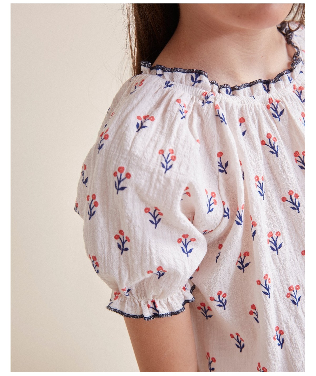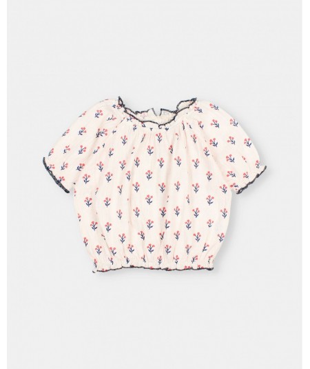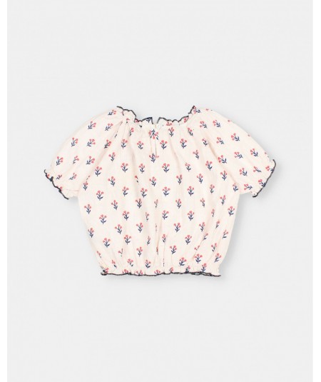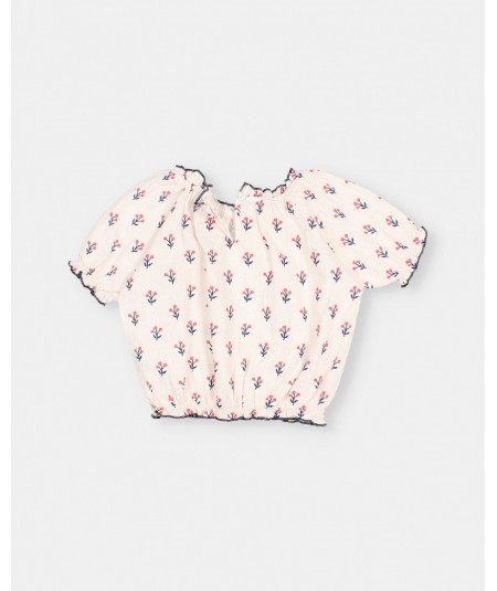 Blusa manga corta con textura, con estampado capri con acabados a contraste.. De Búho Barcelona.