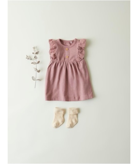 Vestido sin mangas para bebé niña, con pequeño volante en hombros y confeccionado en mezcla de tejido de algodón orgánico.