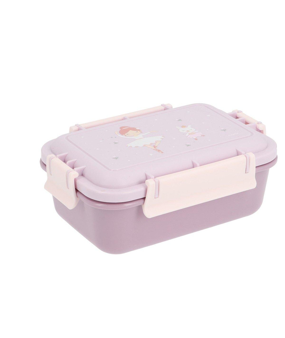 Caja para almuerzo con 4 cierres de clic, para fijar fácilmente, con fiambrera interior para fruta, que incluye pequeño tenedor.