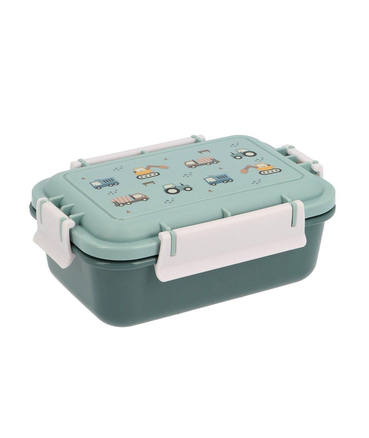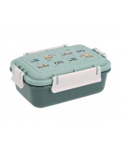 Caja para almuerzo con 4 cierres de clic, para fijar fácilmente, con fiambrera interior para fruta, que incluye pequeño tenedor.