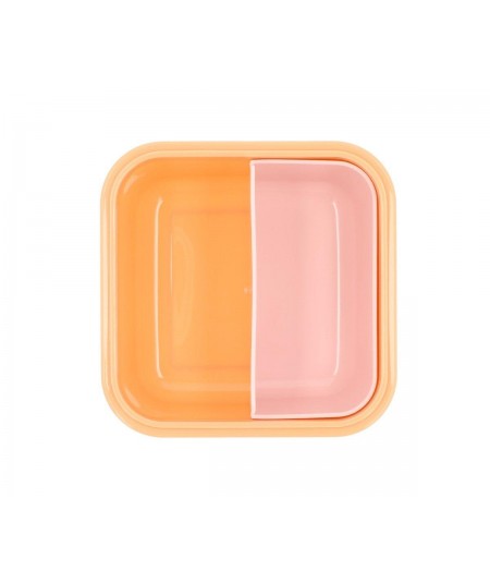 Fiambrera o caja de almuerzo con separador extraíble en la parte interior, con cierres laterales con 4 lengüetas y tapa hermética (el separador interior deja filtrar los líquidos entre compartimentos) perfecta para llevar el desayuno o merienda al parque o al colegio.