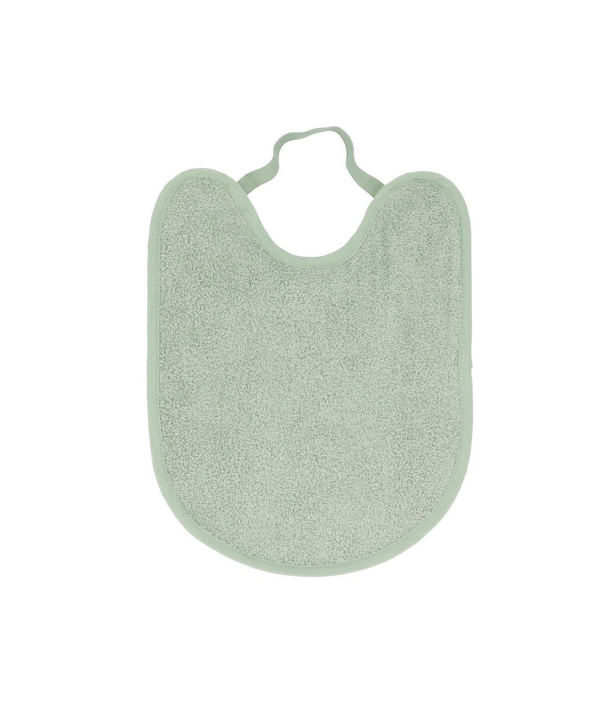 Clásico babero con una cara de toalla de rizo y la otra plastificada para evitar que traspase la comida o los líquidos a la ropa cuando cae sobre ella.