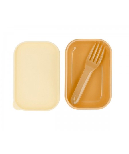 Caja para almuerzo con 4 cierres de clic, para fijar fácilmente, con fiambrera interior para fruta, que incluye pequeño tenedor.