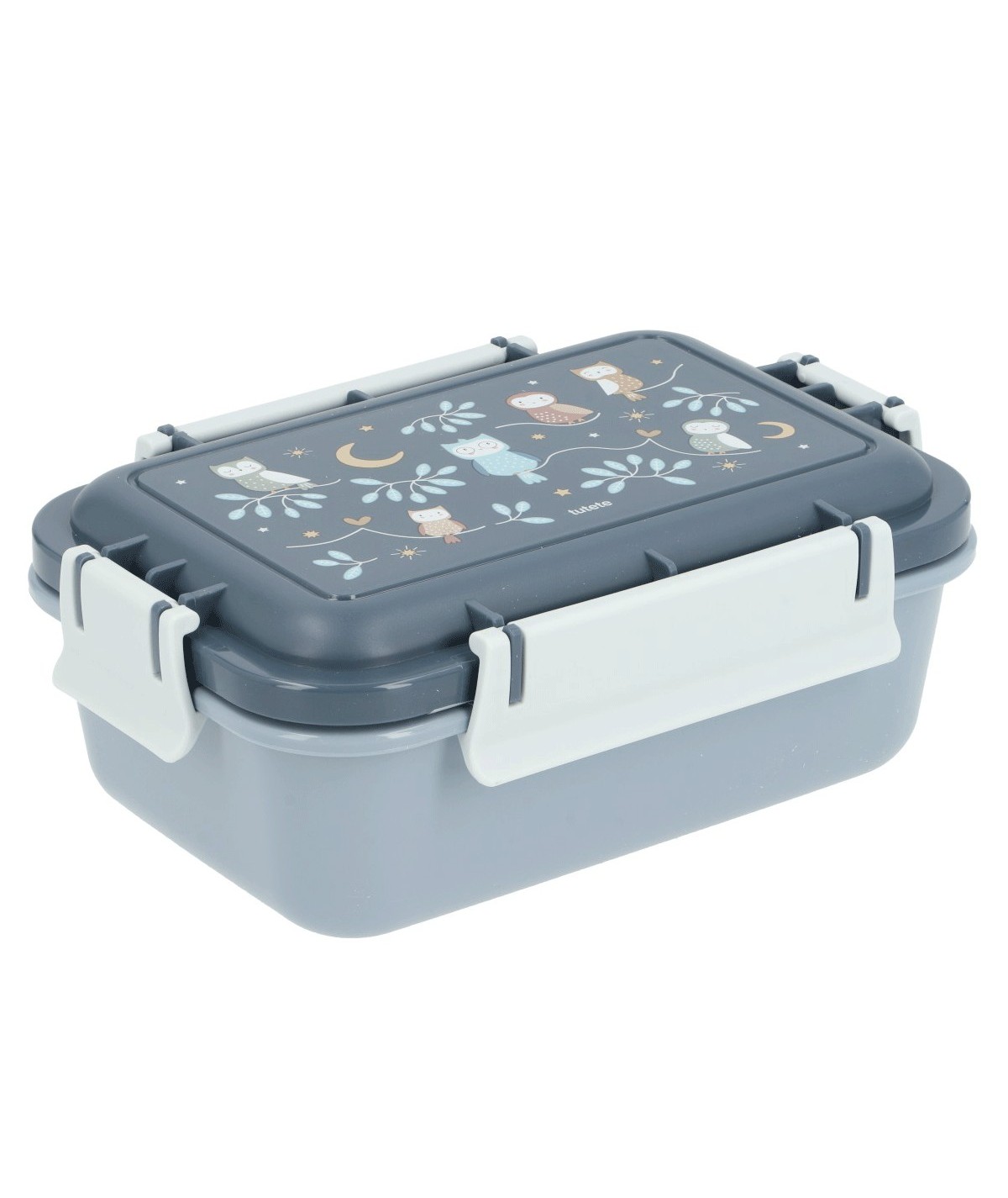 Caja para almuerzo con 4 cierres de clic, para fijar fácilmente, con fiambrera interior para fruta, que incluye pequeño tenedor.