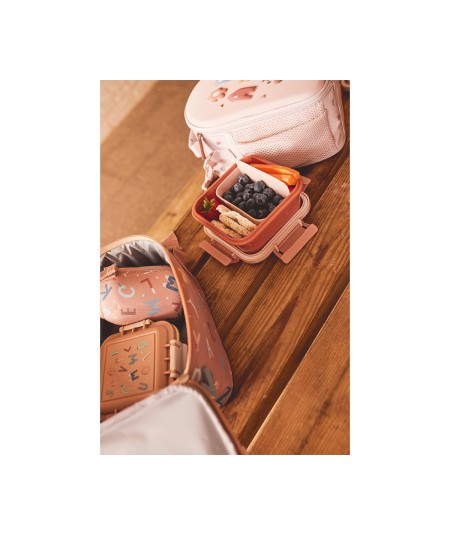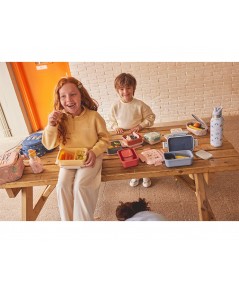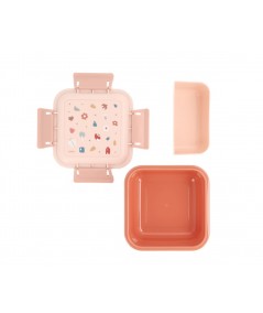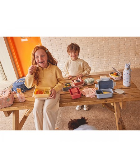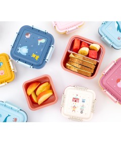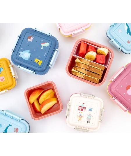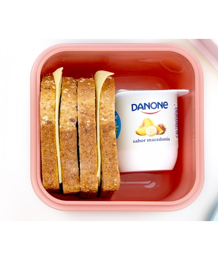 Fiambrera o caja de almuerzo con separador extraíble en la parte interior, con cierres laterales con 4 lengüetas y tapa hermética (el separador interior deja filtrar los líquidos entre compartimentos) perfecta para llevar el desayuno o merienda al parque o al colegio.