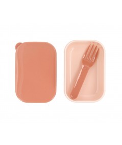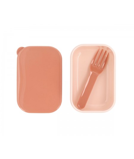 Esta pequeña cajita de fruta con tenedor, está pensaba para introducir dentro de otra caja de almuerzo más grande y llevar la fruta o pequeños snacks separados del resto de almuerzo.
