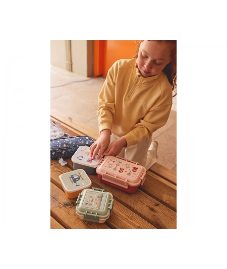 Fiambrera o caja de almuerzo con separador extraíble en la parte interior, con cierres laterales con 4 lengüetas y tapa hermética (el separador interior deja filtrar los líquidos entre compartimentos) perfecta para llevar el desayuno o merienda al parque o al colegio.