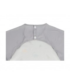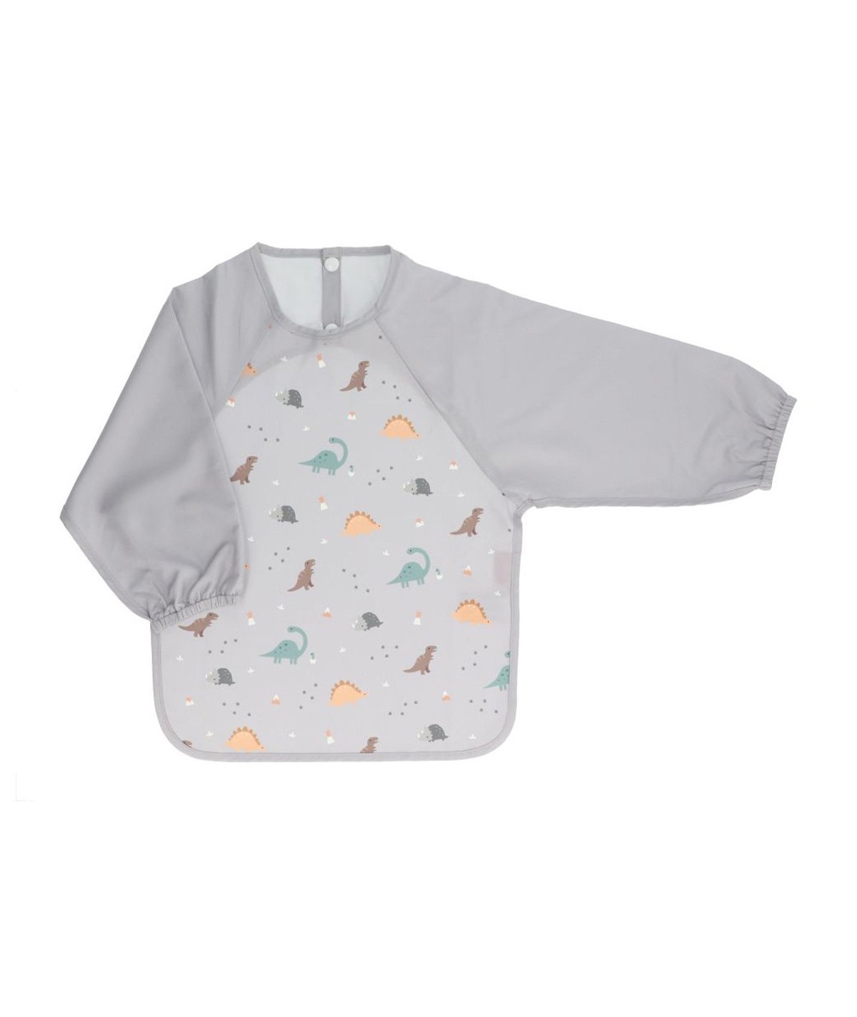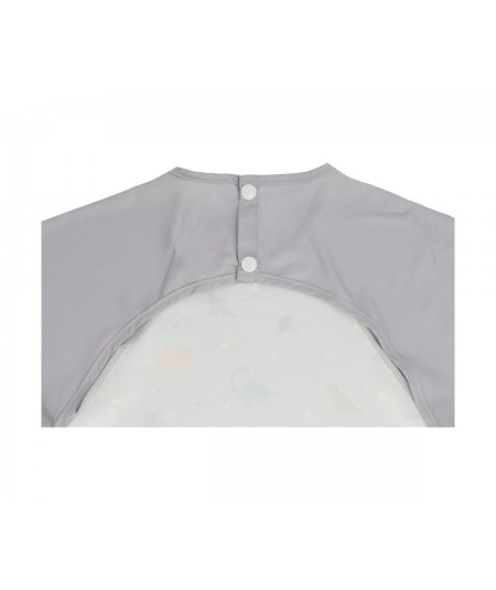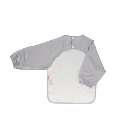 Babero con mangas fabricado en poliéster con acabado waterproff, una capa repelente al agua y los líquidos, lo que lo hace ideal para proteger la ropa de los peques durante las comidas y facilitando su limpieza posterior.