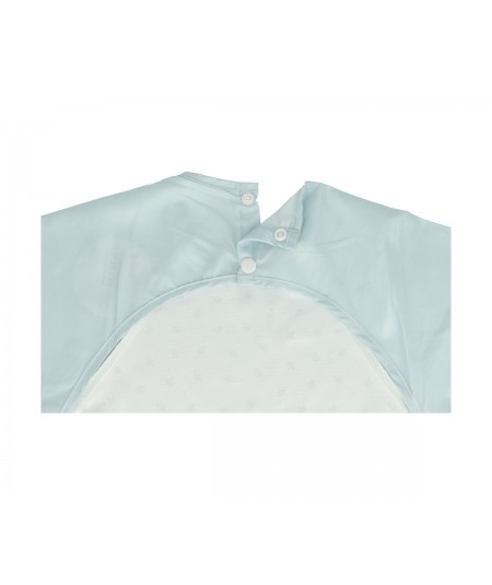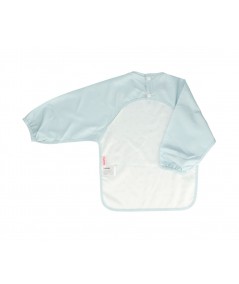 Babero con mangas fabricado en poliéster con acabado waterproff, una capa repelente al agua y los líquidos, lo que lo hace ideal para proteger la ropa de los peques durante las comidas y facilitando su limpieza posterior.