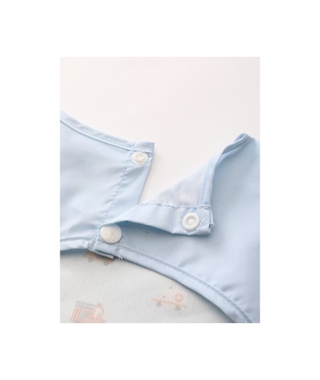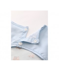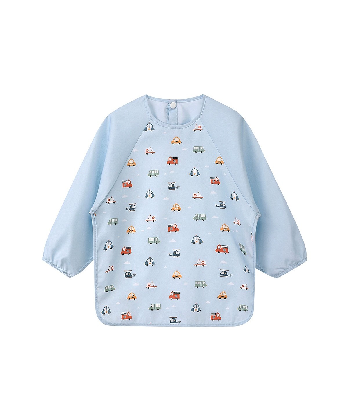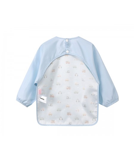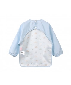 Babero con mangas fabricado en poliéster con acabado waterproff, una capa repelente al agua y los líquidos, lo que lo hace ideal para proteger la ropa de los peques durante las comidas y facilitando su limpieza posterior.