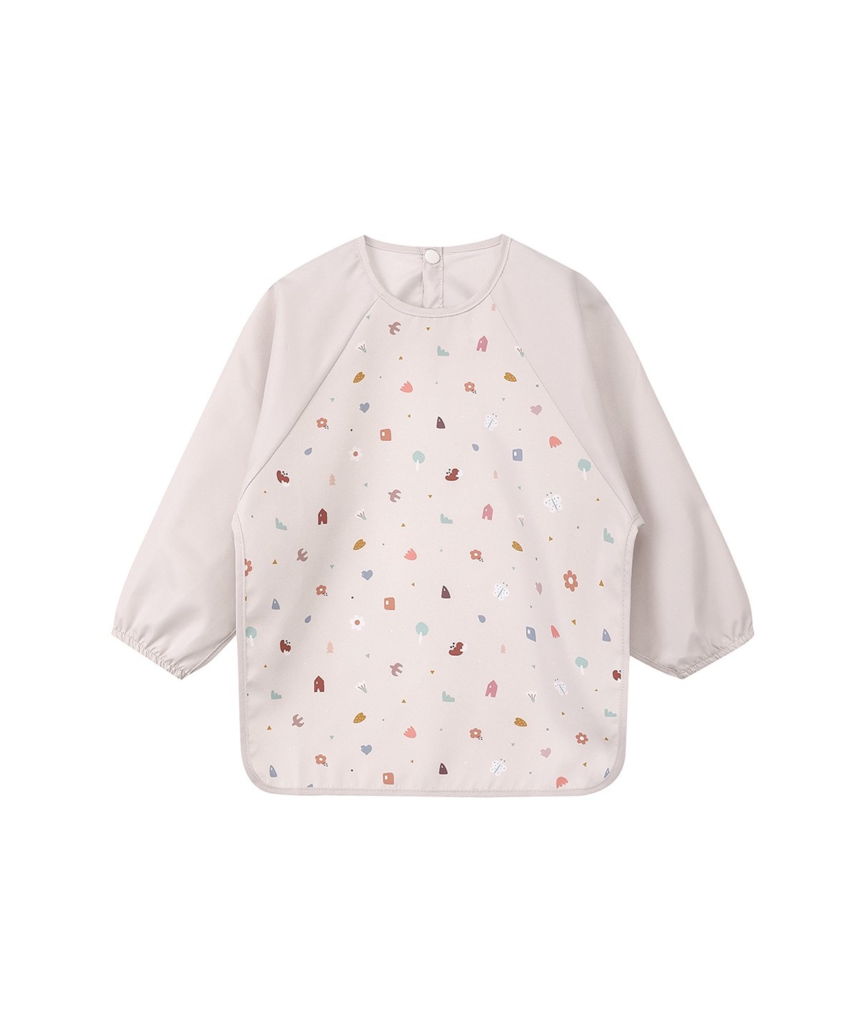 Babero con mangas fabricado en poliéster con acabado waterproff, una capa repelente al agua y los líquidos, lo que lo hace ideal para proteger la ropa de los peques durante las comidas y facilitando su limpieza posterior.