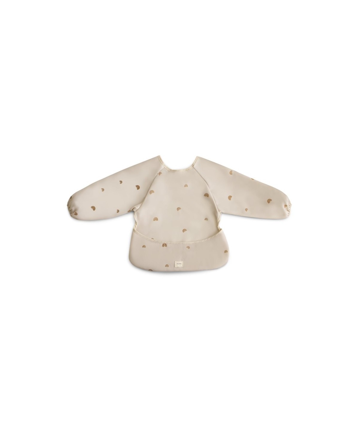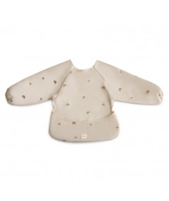 Babero con mangas y bolsillo delantero, muy prácticos, fáciles de limpiar. De Mushie.