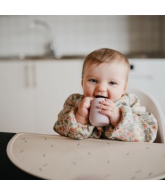 Babero con mangas y bolsillo delantero, muy prácticos, fáciles de limpiar. De Mushie.