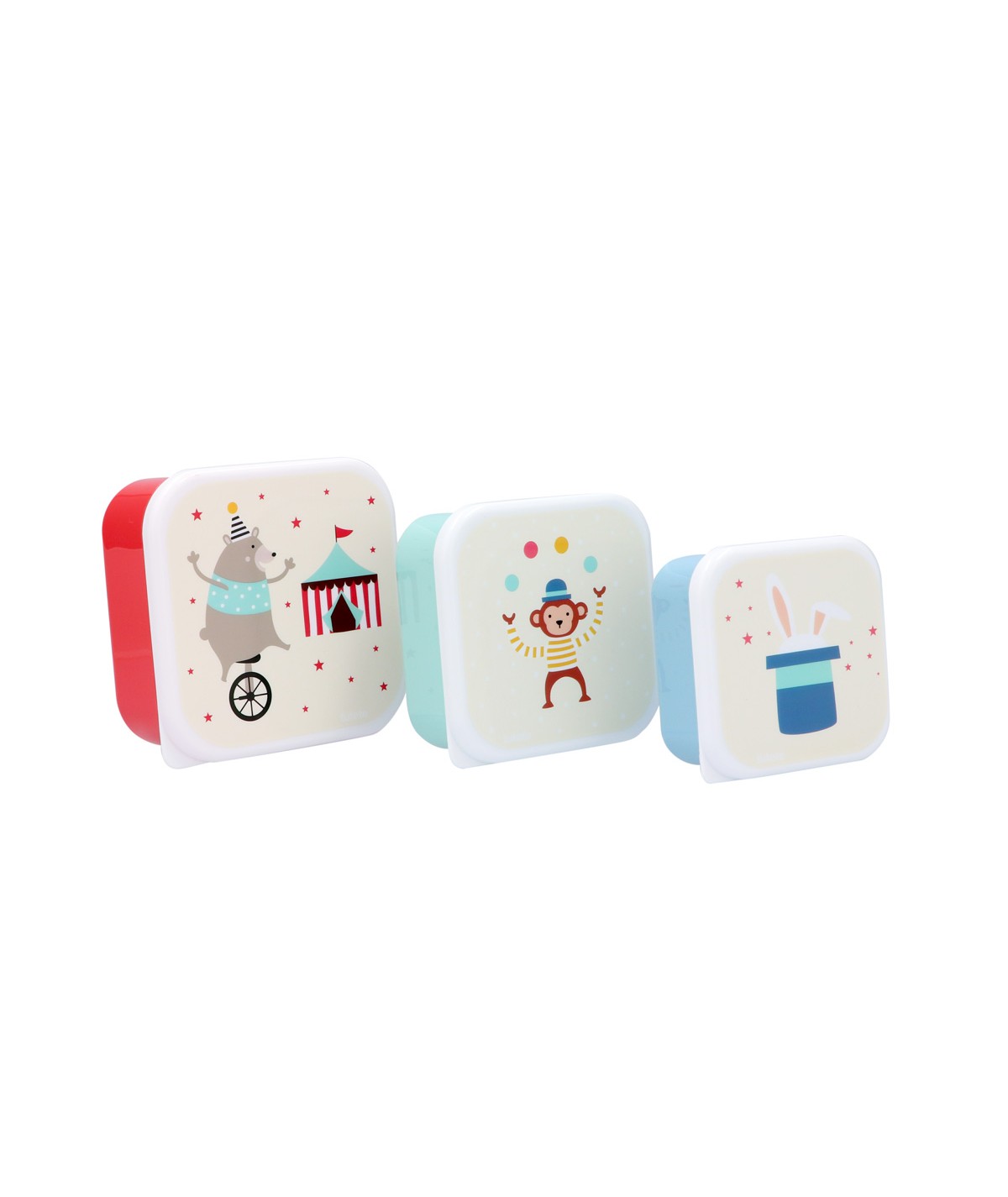 Cada caja tiene un tamaño y dibujo distinto, con cierre de tapa de plástico suave, para que los más pequeños puedan abrirla fácilmente.