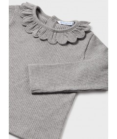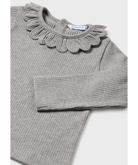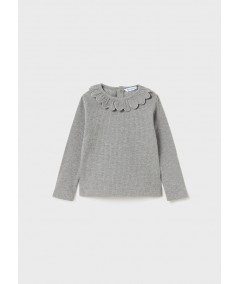 CAMISETA MANGA LARGA GRIS CON CUELLO BEBÉ NIÑA - MAYORAL