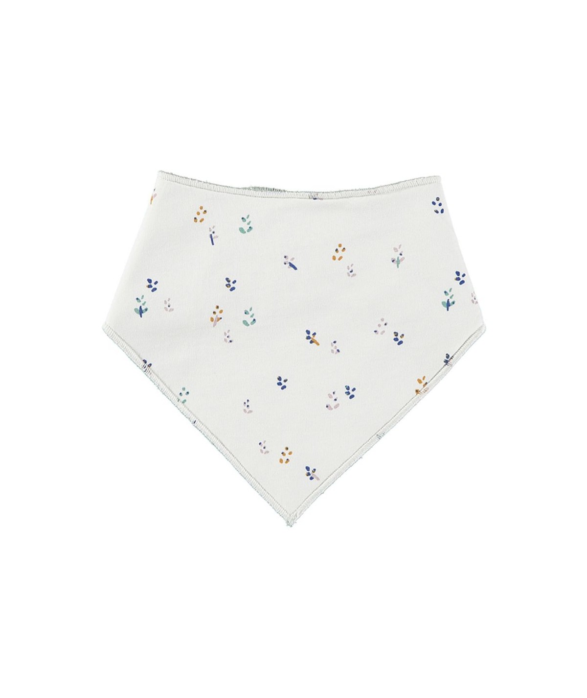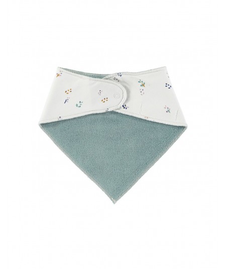 Bandana o parababas de punto para babitas, en forma de triángulo y con dos broches a presión para cierre, para ajustar la posición según la medida del cuello del bebé.