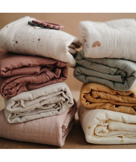 Fina muselina confeccionada en algodón orgánico de 120 x 120 cm. De Mushie.