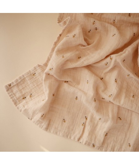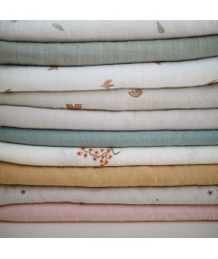 Muselina de tejido fino y transpirable, confeccionada en suave algodón orgánico, libre de pesticidas.