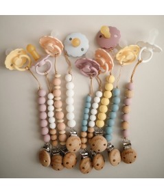 Cadena porta-chupetes con cierre mediante clip de silicona, de colores únicos y elegantes, de inspiración vintage.