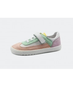 Drop cero (altura de la suela uniforme en la zona del talón y los dedos) para favorecer el equilibrio y la coordinación en los primeros pasos, sin contrafuertes, sólo materiales suaves y transpirables que garantizan la comodidad durante todo el día.