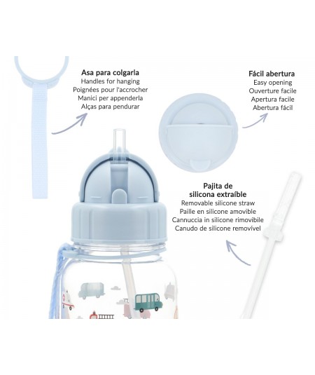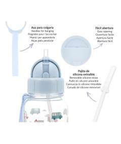 Botella de Tritán, libre de BPA con pajita de silicona, perfecto para que los peques lleven su agua en el cole, en clase de actividades, al parque...