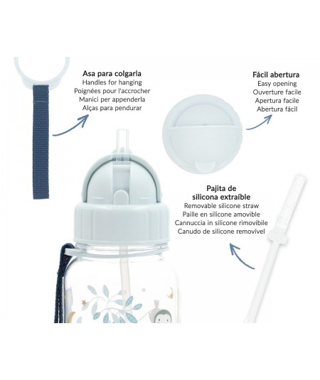 Botella de Tritán, libre de BPA con pajita de silicona, perfecto para que los peques lleven su agua en el cole, en clase de actividades, al parque...