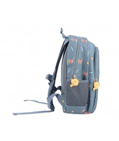 Un bolsillo frontal, que ocupa casi la altura de la mochila, con múltiples separadores interiores donde guardar lápices,cubiertos y pequeños artículos, que los peques tendrán más accesible