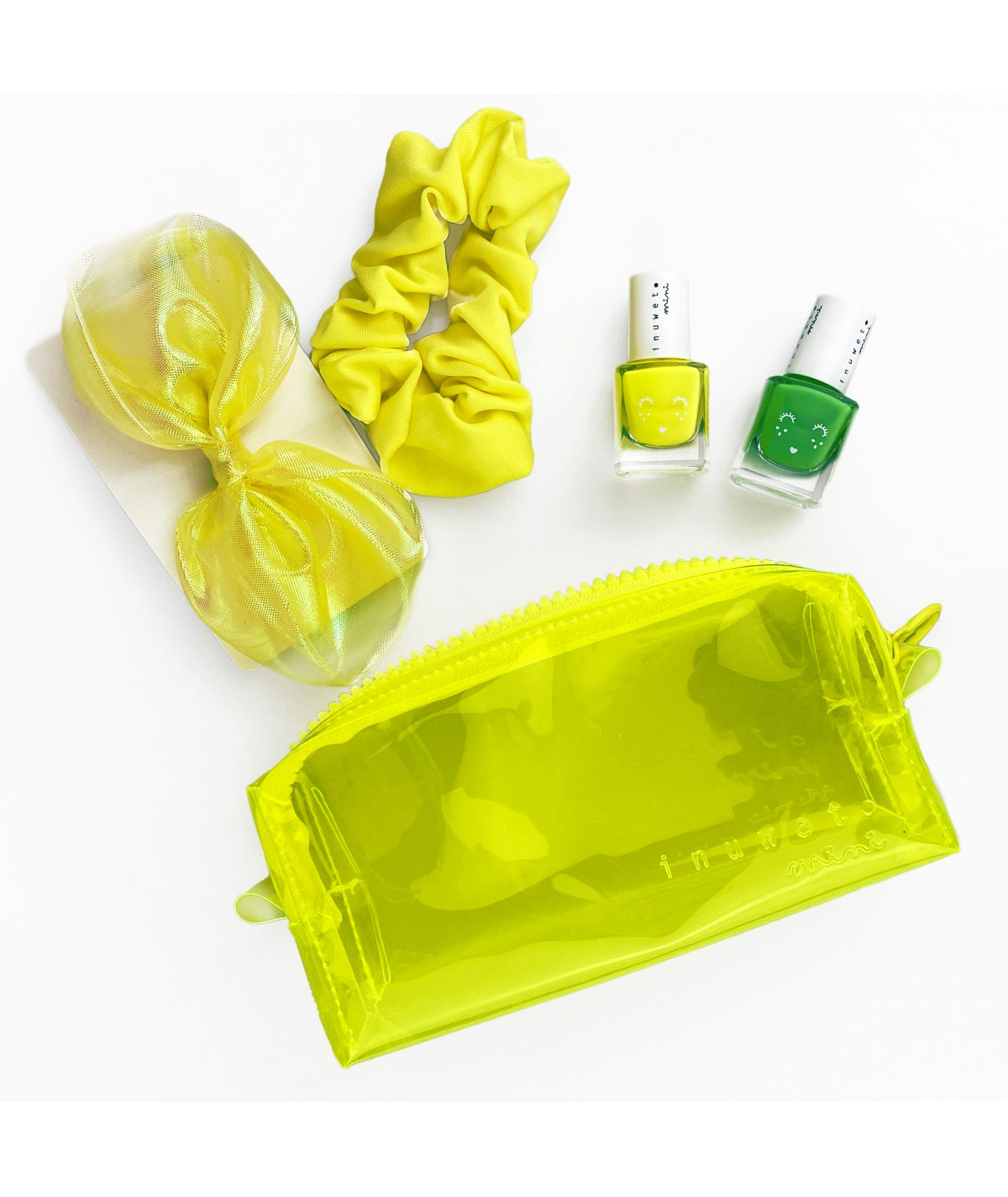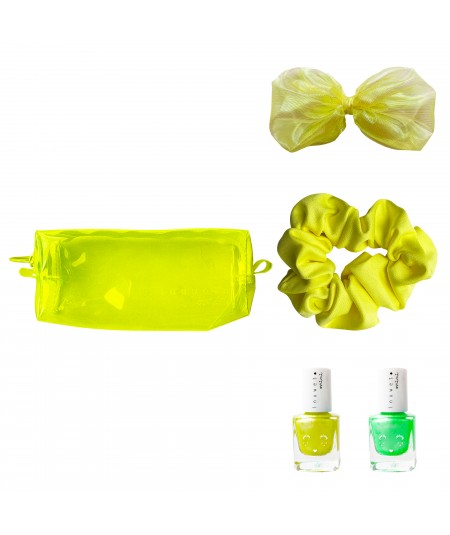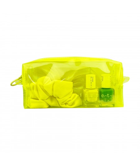 ESTUCHE NEÓN AMARILLO CON 2 ESMALTES + COLETERO + CLIP DE PELO - INUWET