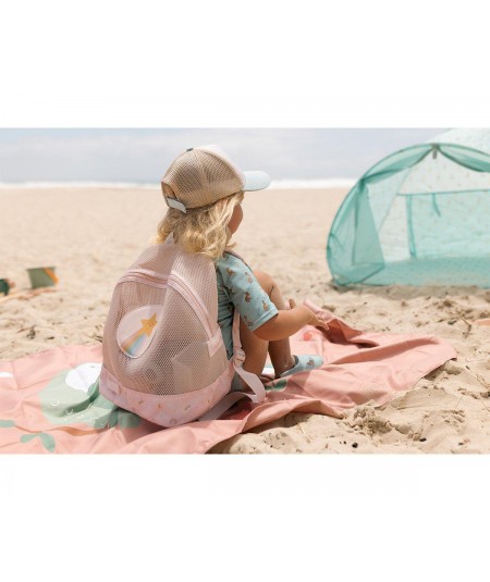 Mochila de rejilla perfecta para evitar que se acumule la arena dentro de ella, y permitirá que los juguetes y la toalla seque más rápido, evitando humedades.