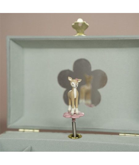 Caja de madera musical, abre la cajita, dale cuerda y el cervatillo girará mientras suena una bonita melodía. De Little Dutch.