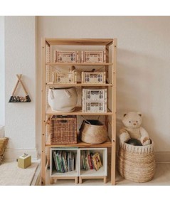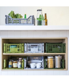 Caja de almacenaje plegable y apilables, muy versátil y resistentes, soportando bastante peso, por lo que son perfecta para almacenar y organizar cualquier espacio y estancia: habitación de los peques, la oficina, el baño, la cocina, salón... son aptas para estar en contacto con los alimentos, por lo que también serán una buena opción para organizar la cocina.