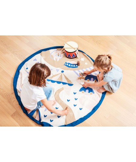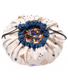 Fantástico y divertido saco de almacenaje 2 en 1, que a su vez, podrá usarse como alfombra de juego, donde los niños y niñas podrán pasar horas jugando, y cuando terminen, podrán recogerlo todo de manera fácil, simplemente habrán de tirar de la cuerda, transformado la alfombra en un saco de almacenaje. Una manera muy práctica y sencilla de organización.