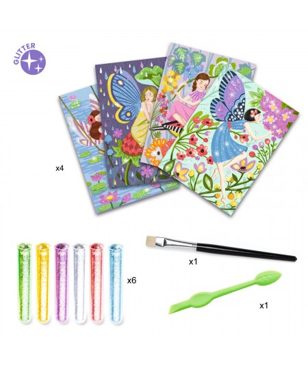 4 cuadros que representan las encantadoras hadas, que se iluminan con purpurina de colores.