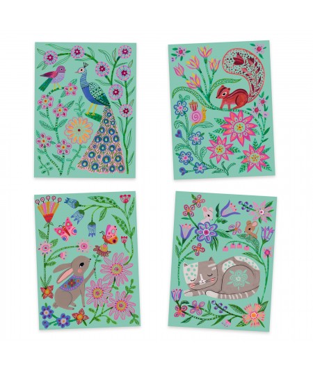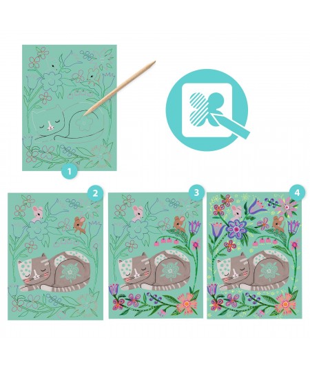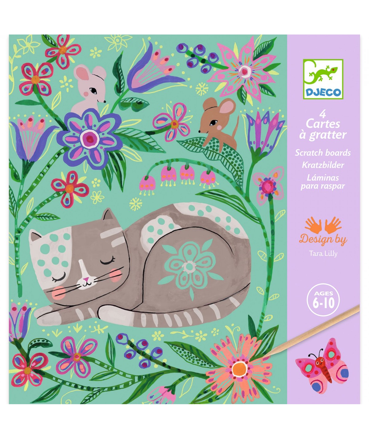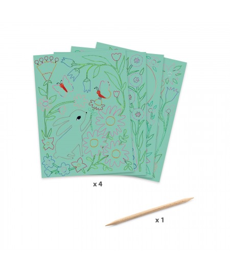 4 tarjetas para rascar y descubrir los colores escondidos. De Djeco.