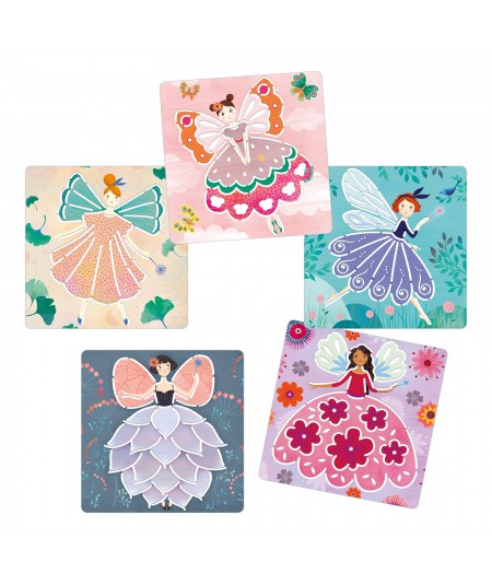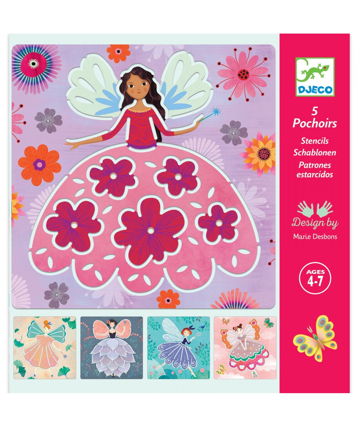 Set de 5 plantillas de plástico ilustradas para seguir el trazo del dibujo mediante las hendiduras. De Djeco.