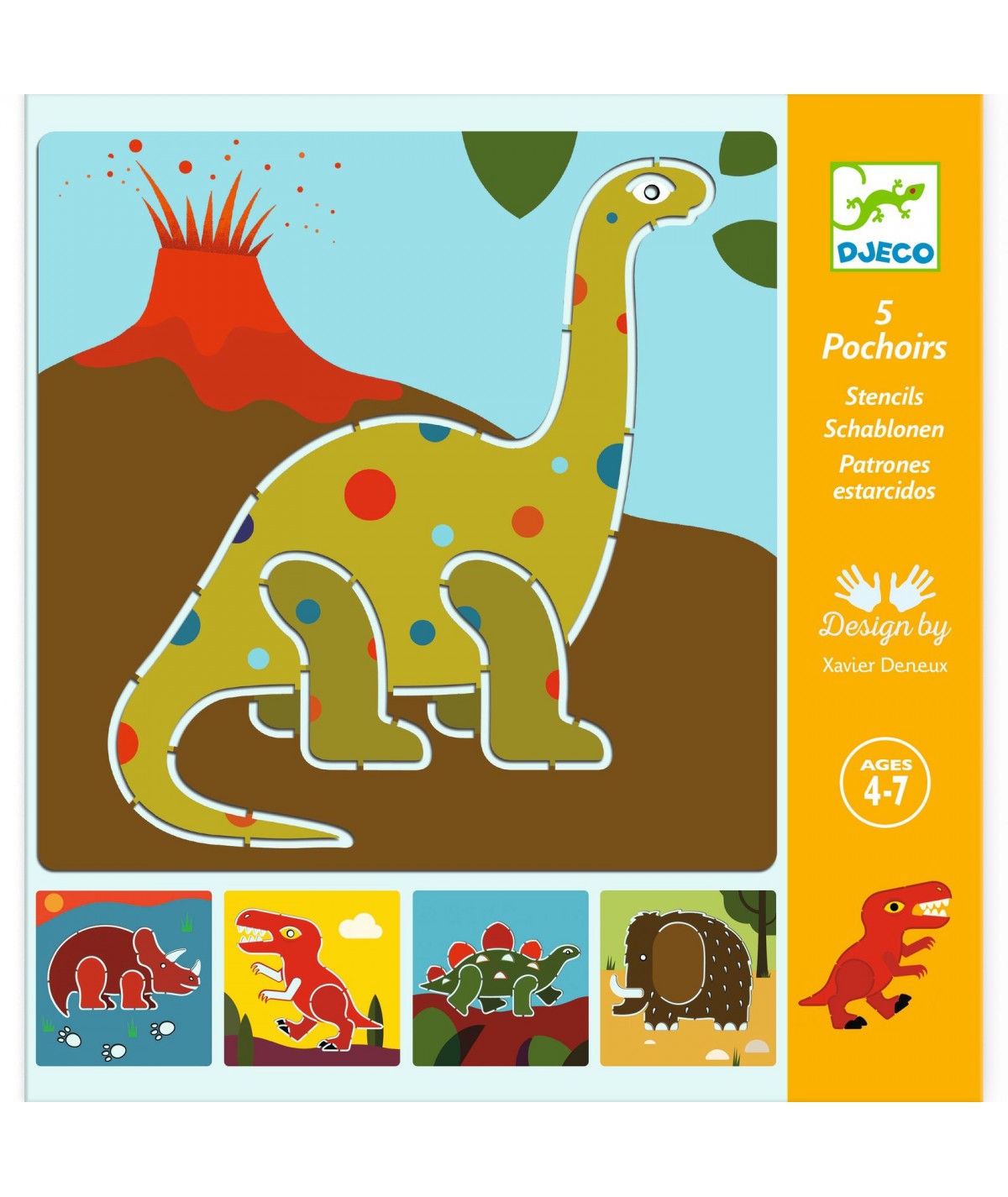 Set de 5 plantillas de plástico ilustradas para seguir el trazo del dibujo mediante las hendiduras. De Djeco.