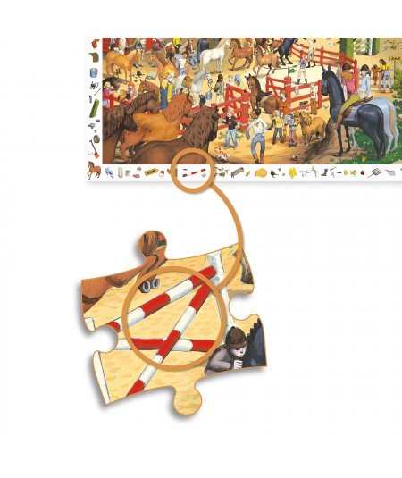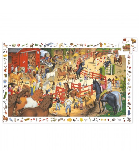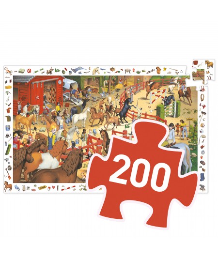 Puzzle de observación de 200 piezas, con temática equitación. De Djeco.