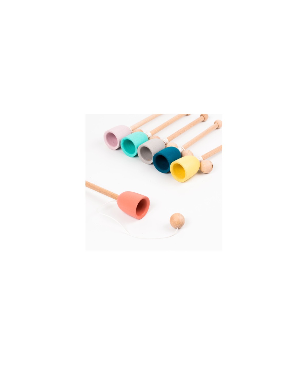 El boliche es un juego clásico de habilidad manual, un juego clásico y artesanal, fabricado en madera sostenible y pintura ecológica. De Me&Mine.