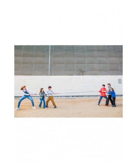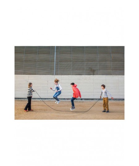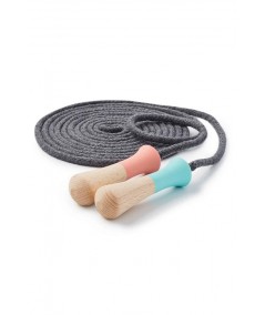La comba de saltar larga, de 4,5 metros, es un juego clásico de habilidad manual, un juego clásico y artesanal, fabricado en madera sostenible y pintura ecológica. De Me&Mine.