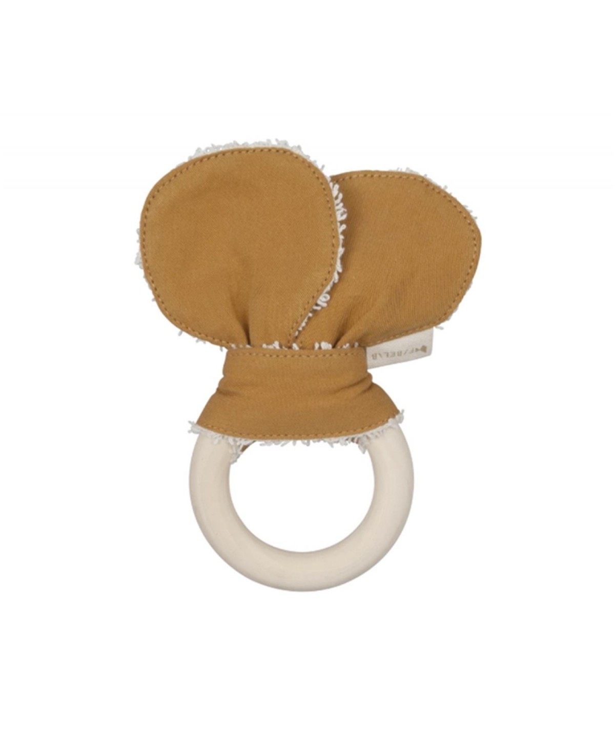 Mordedor de madera natural con diseño textil. De Fabelab.