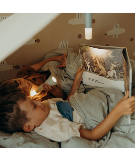 Divertida, versátil y con un bonito diseño, la linterna KIDYFLASHLIGHT, es multifuncional, y ayuda a estimular la imaginación de los niños a la vez que les proporciona una sensación de seguridad.