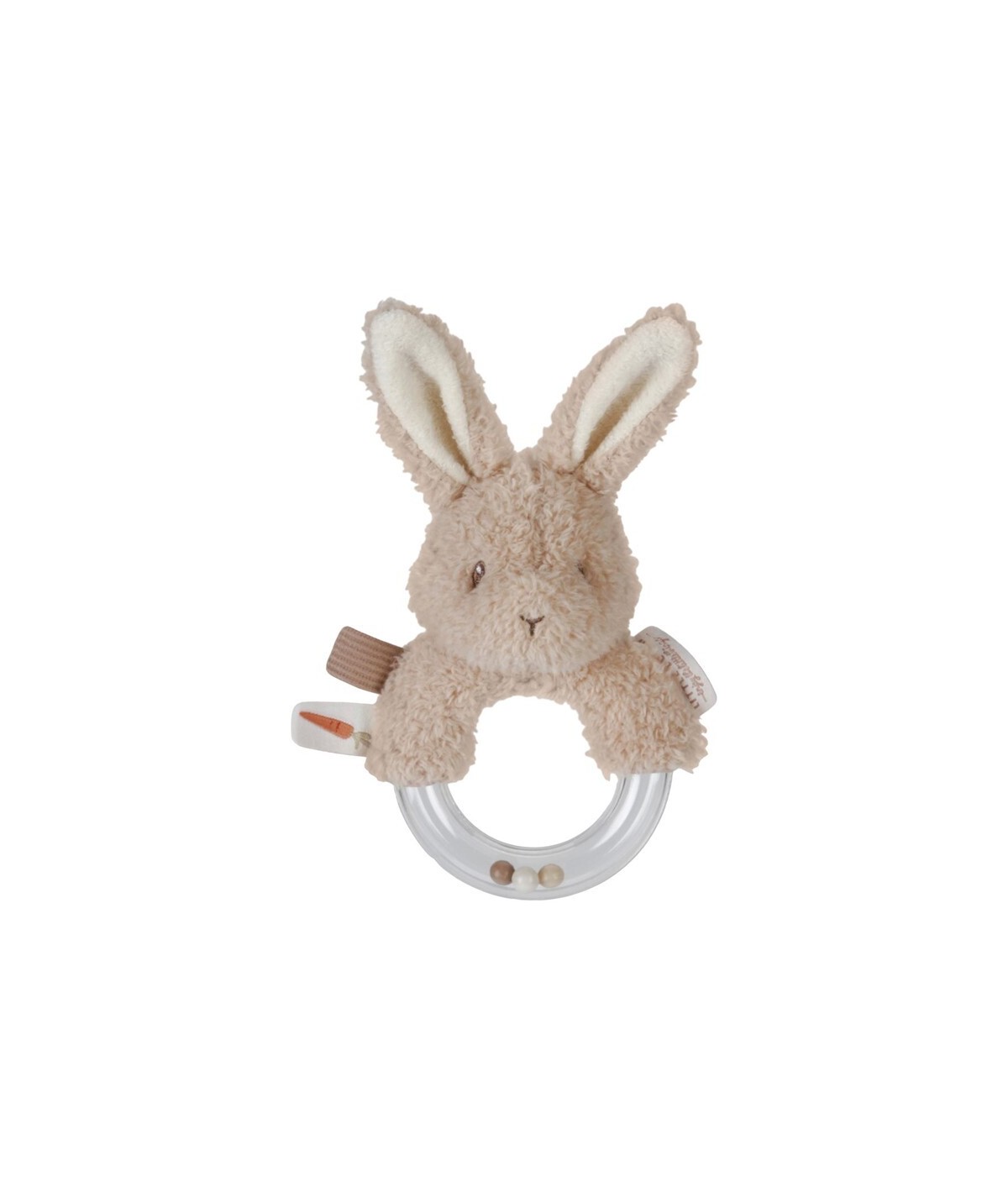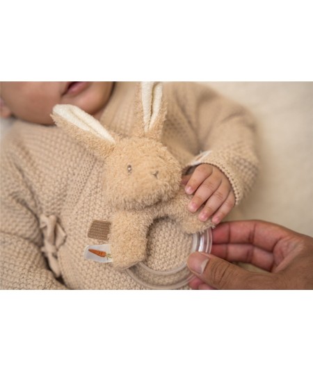 Sonajero conejito de peluche con agarre de anilla con bolitas. De Little Dutch.
