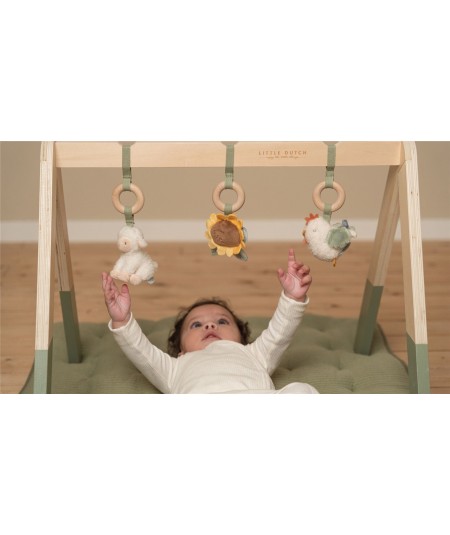 Gimnasio de madera para bebé con actividades, colección Pequeña Granja. De Little Dutch.