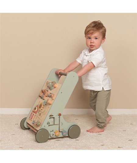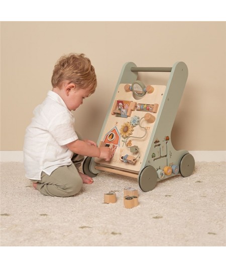 Andador de madera con 8 actividades, perfectas para explorar y desarrollar sus habilidades motoras.