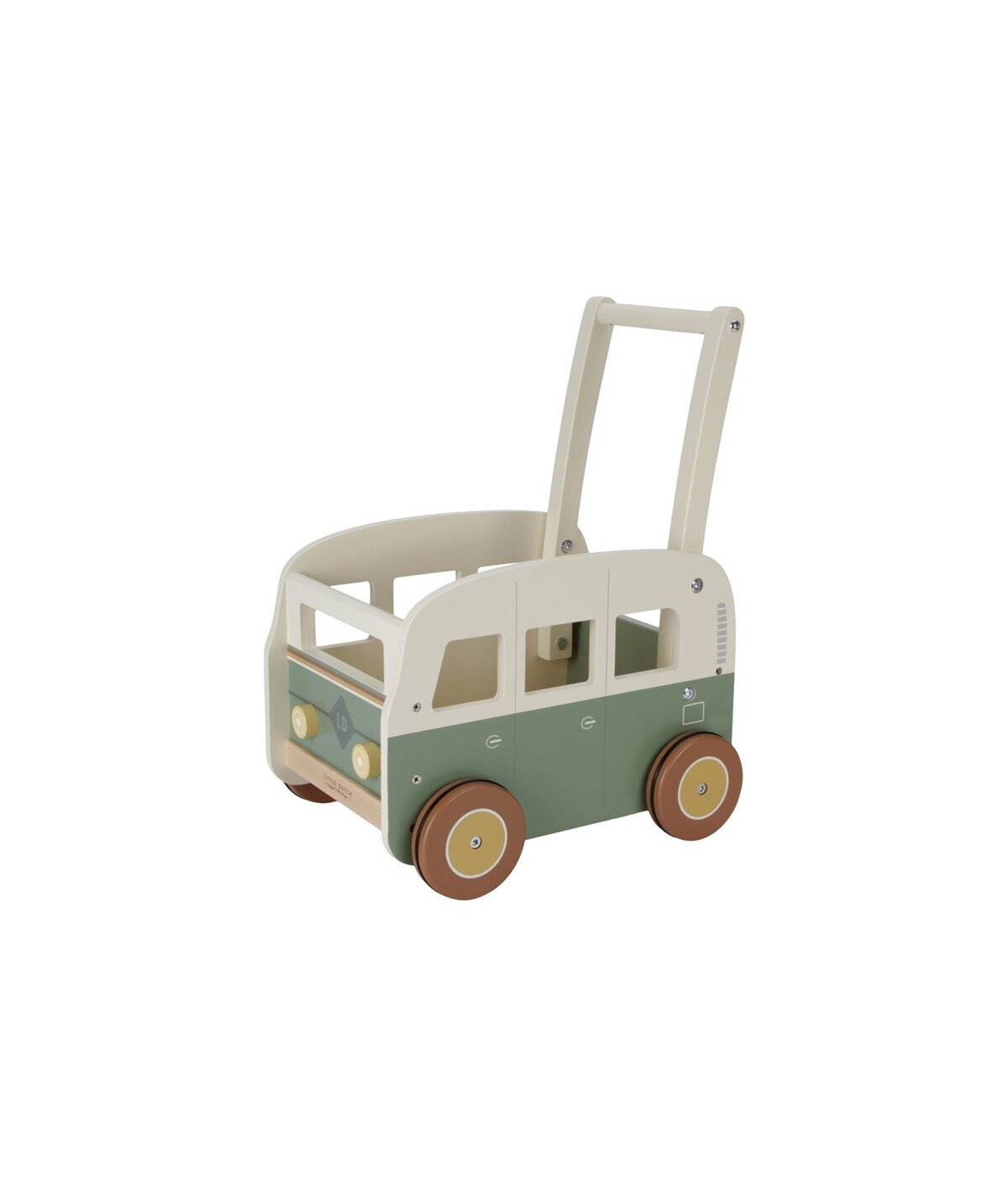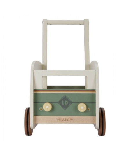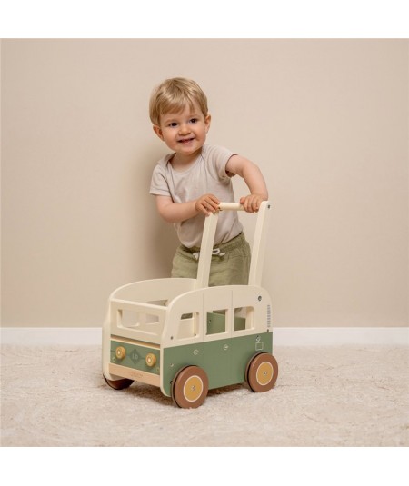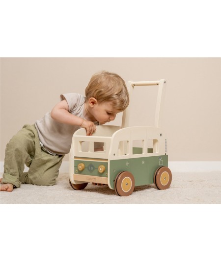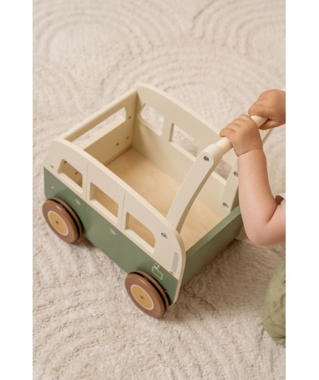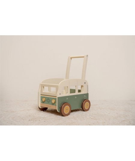 Bonito andador de madera con forma de furgoneta vintage, perfectas para explorar y desarrollar sus habilidades motoras. De Little Dutch.