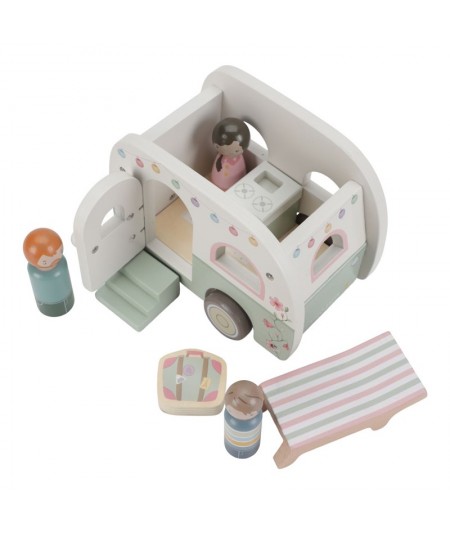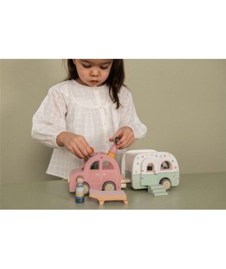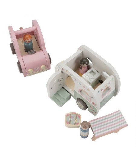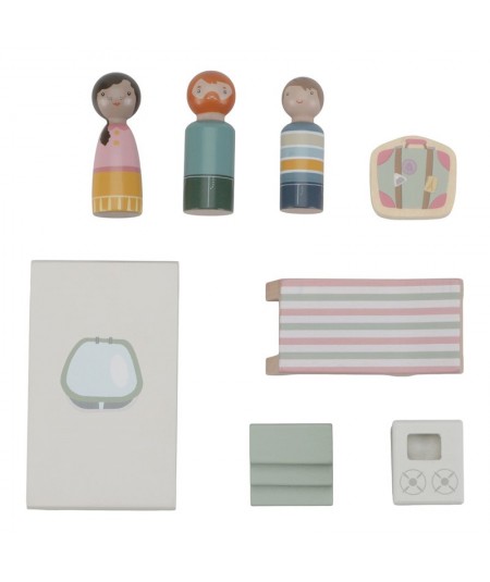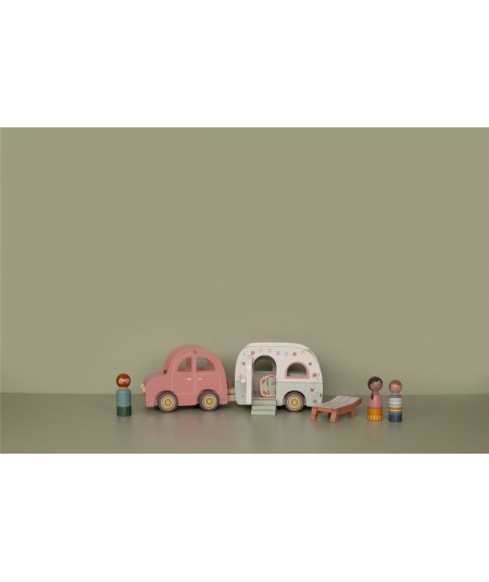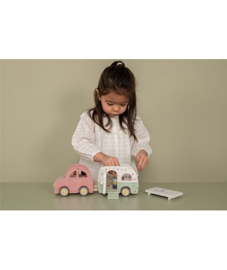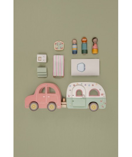 Set de coche y caravana de madera, perfecto para descubrir el mundo aventurero, con muñecos encajables y accesorios. De Little Dutch